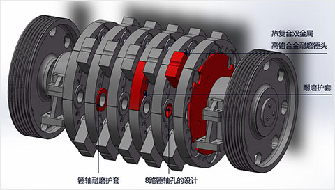我們的轉子設計了8路錘軸孔,用4路錘孔,預留4路錘孔備用,這樣以來我們的轉子從一個轉子變成兩個轉子。