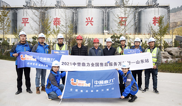 第二站山東達順建材2021年10月19日,中譽鼎力售后服務萬里行團隊來到山東省泰安市達順建材有限公司開展售后服務,這條時產1500噸砂石生產線中譽鼎力以EPC項目總承包的形式建設,2020年4月份開工建設,12月份正式投產運營。