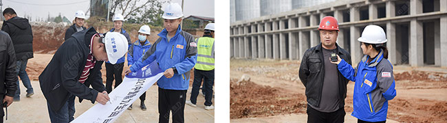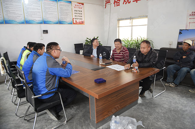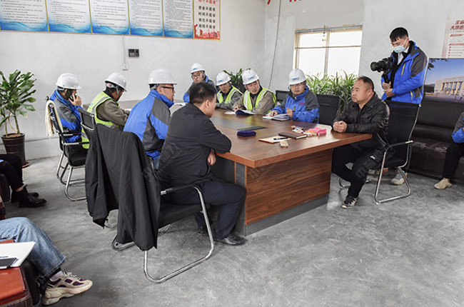 這里清新的空氣、宜人的風景讓大家心曠怡。售后服務團隊到達項目現場后,先與鑫象建材項目負責人楊總在會議室就項目在建過程中遇到的問題、難題等進行詳細交流,例如雨水較多帶來的基礎滲水問題,楊總希望我們能給出建議,幫助其解決問題。