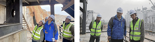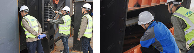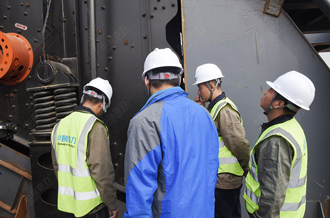 在項目建設現場,售后服務團隊深入破碎機頂部認真檢查每一個配件,并就項目的安裝、設計工藝等進行詳細說明和安裝指導。
