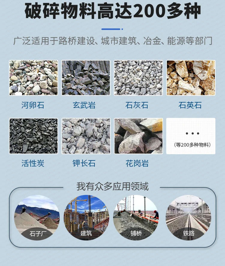 適應物料: | 花崗巖、石灰石、玄武巖、煤矸石、青石等高中低硬度礦石 |