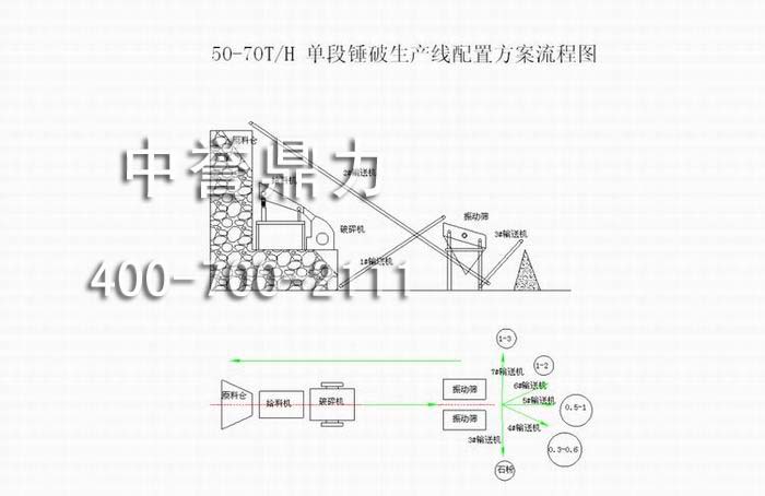 PC0706錘式破碎機時產(chǎn)50噸石料生產(chǎn)線配置方案