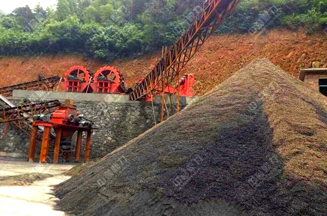 原料由給料機均勻地送到破碎機進行破碎,破碎流程結束后,粒度合格的物料由皮帶輸送機送入到制砂機進行制砂,滿足成品規格的被輸送到振動篩進行篩分,未達到成品粒度要求的物料從振動篩返回制砂機重新加工,形成閉路多次循環。如果對成品潔凈度要求高且現場水資源充足,可在制砂流程結束后配置洗砂機;在水資源比較匱乏的地區,可采用砂石分離機代替洗砂機。