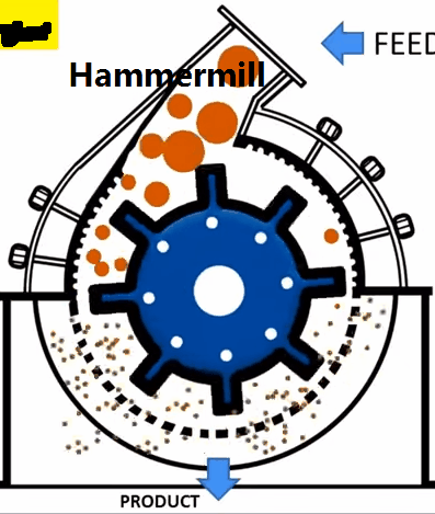 4、小于出料口的物料被排出機外,大于出料口的料塊在再次受到錘頭的沖擊和研磨,直至小于出料口后被排出。